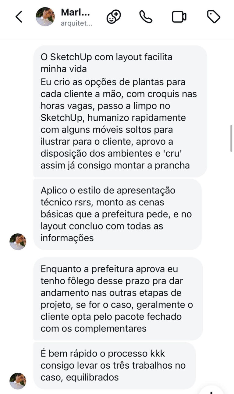 E em 2021 fundou o Studio Baroli, onde se dedica a formar profissionais que querem dominar o LayOut do SketchUp para otimizar tempo e processos para apresentar os seus projetos.